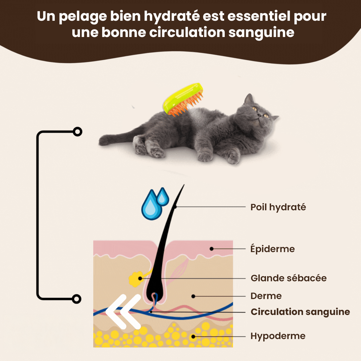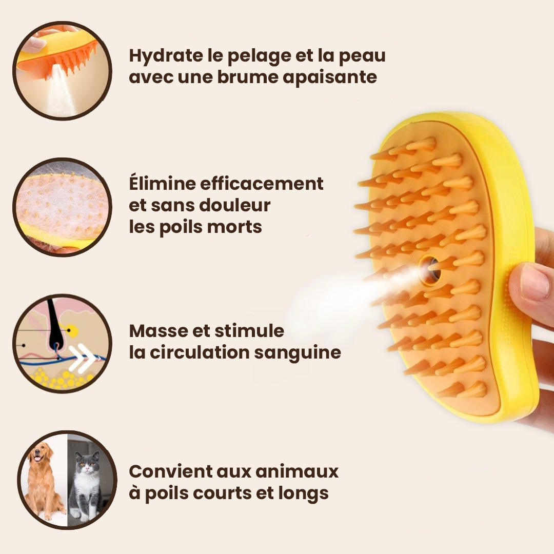 Brosse Vapeur Rafraîchissante pour Poils d'Animaux - Chats & Chiens