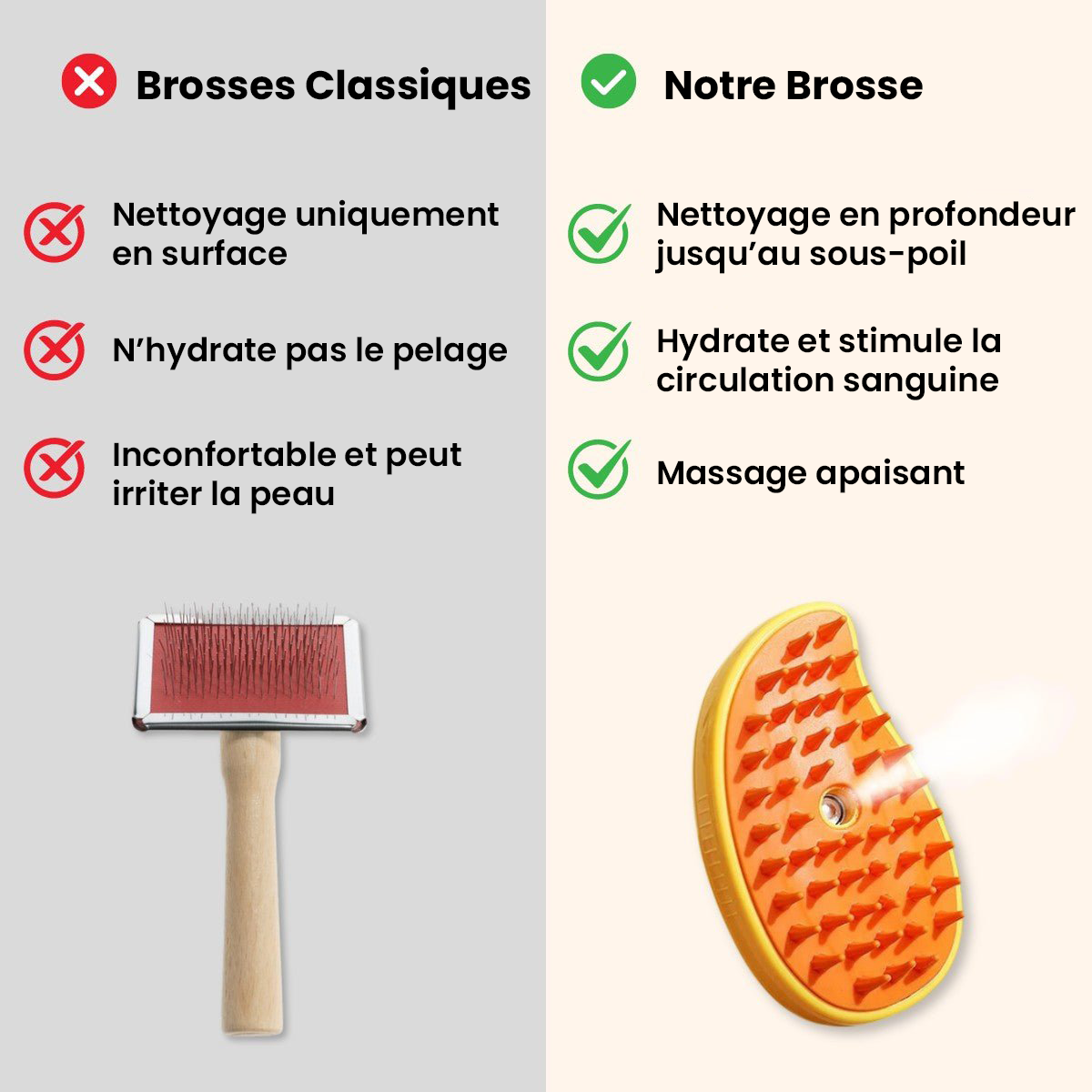 Brosse chien et chat avec vapeur douce – anti-poils morts