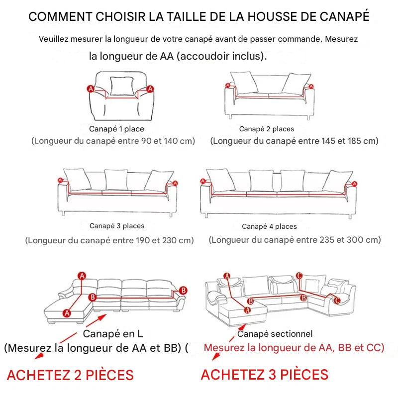 - Conception Élastique : s'adapte parfaitement à tous les types de canapés.