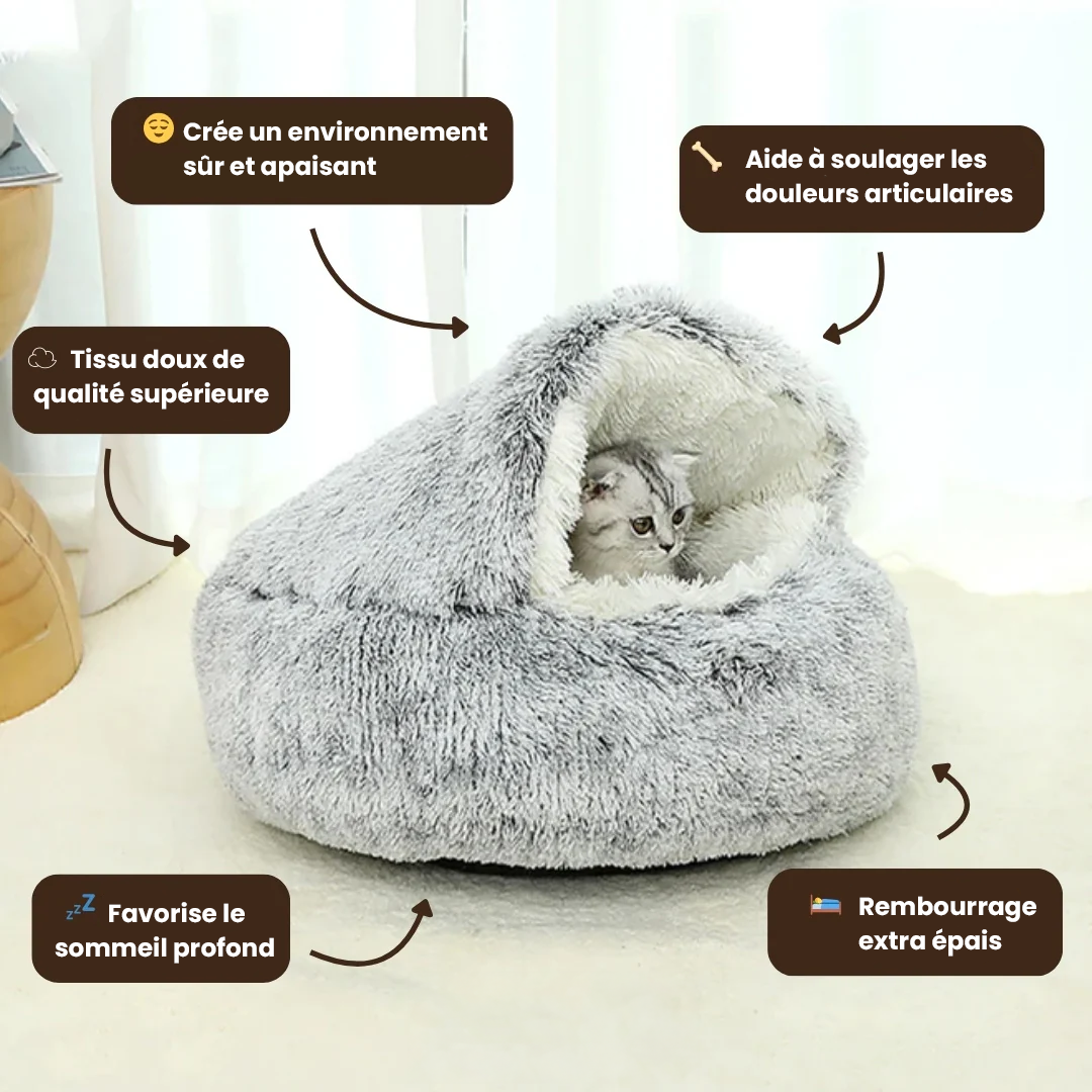 Ce lit coussin doux et enveloppant procure à votre animal un refuge apaisant pour se détendre et mieux dormir. Idéal pour les chats et petits chiens sujets au stress ou à l’anxiété.