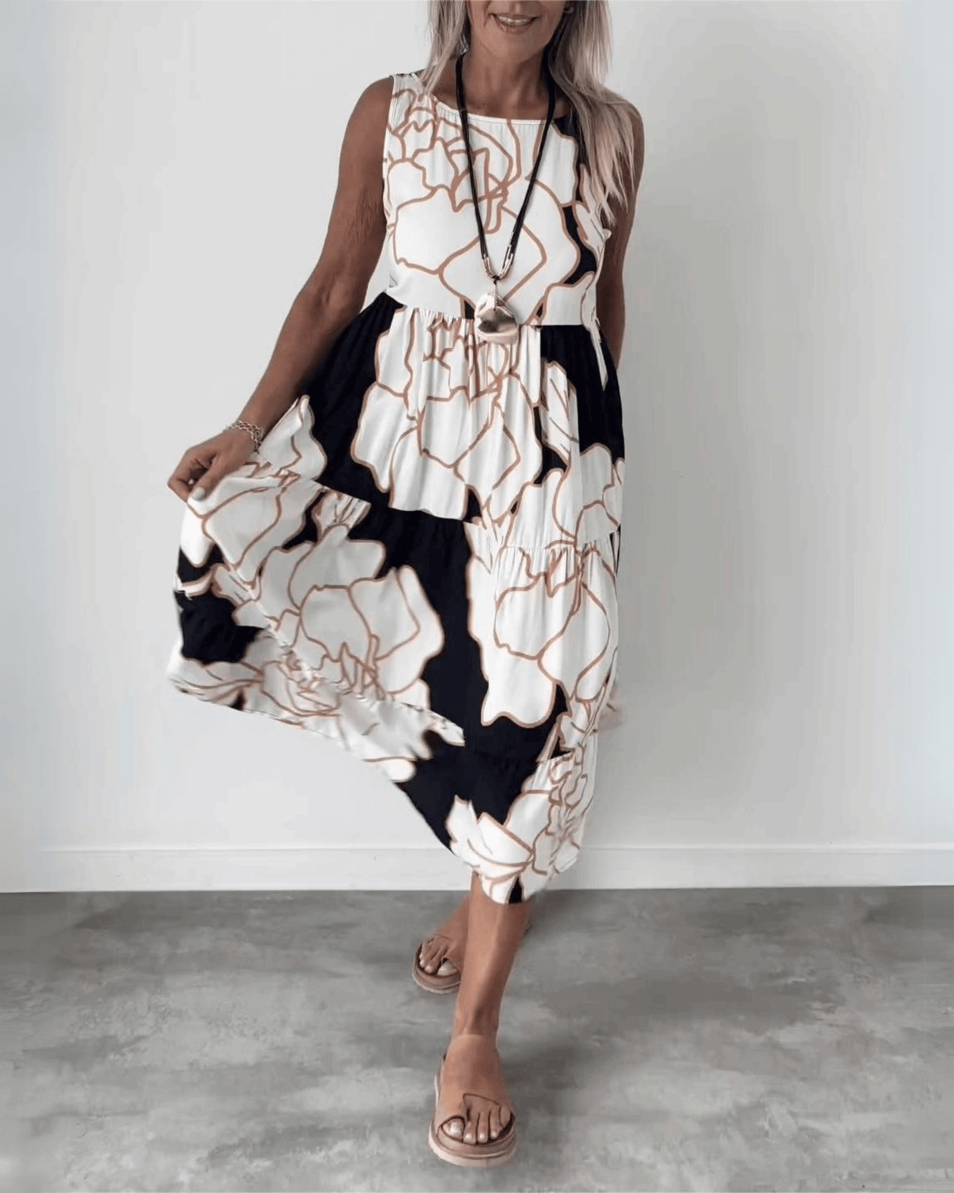 Robe sans manches pour femmes - Coupe A - Imprimé abstrait - Vêtements décontractés légers